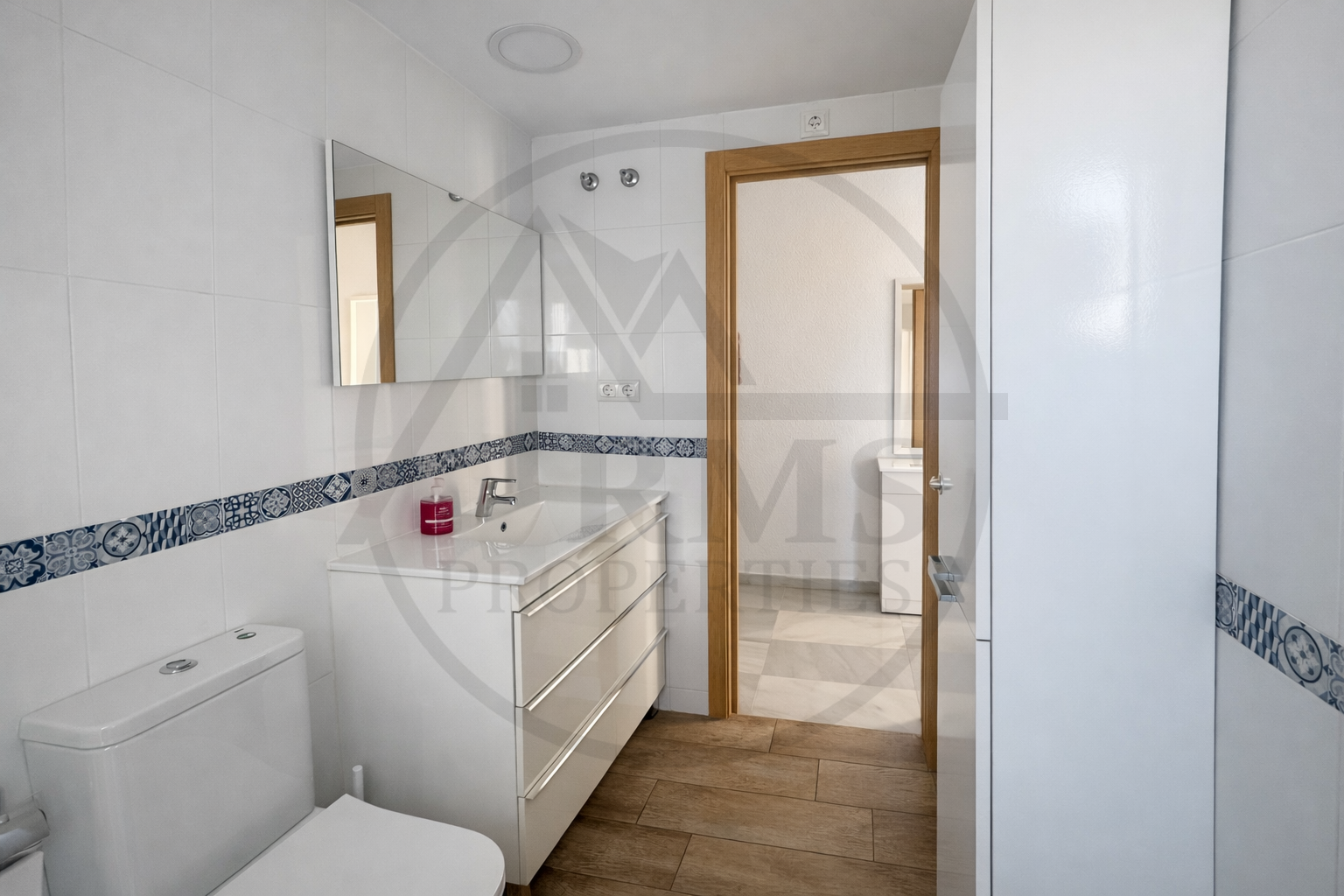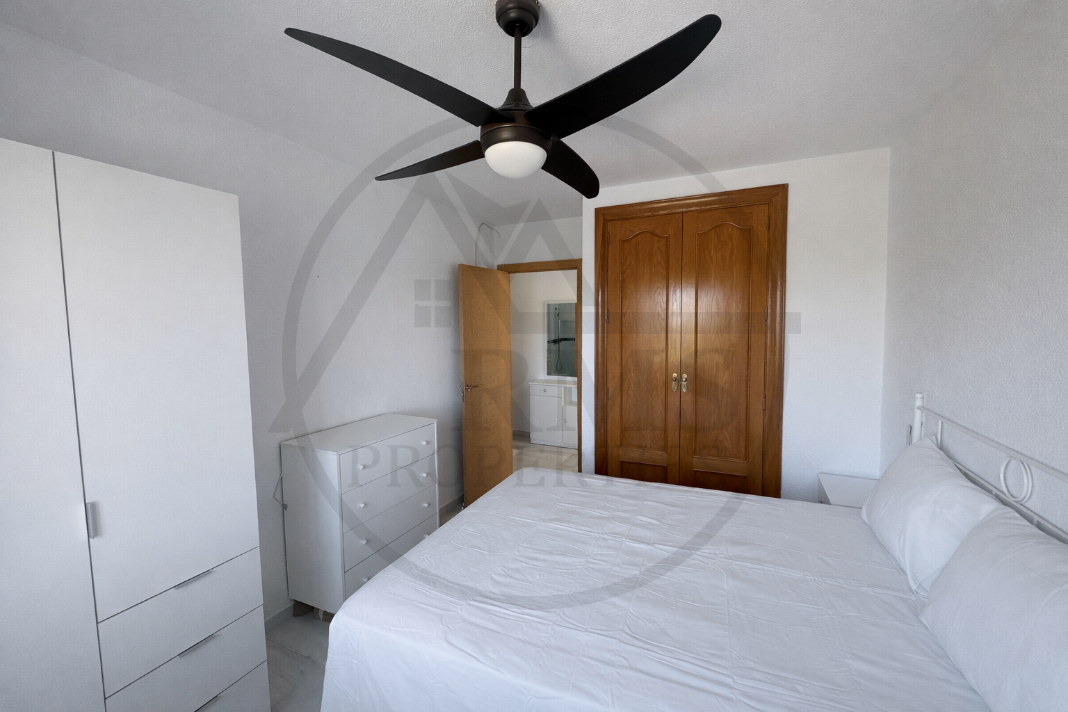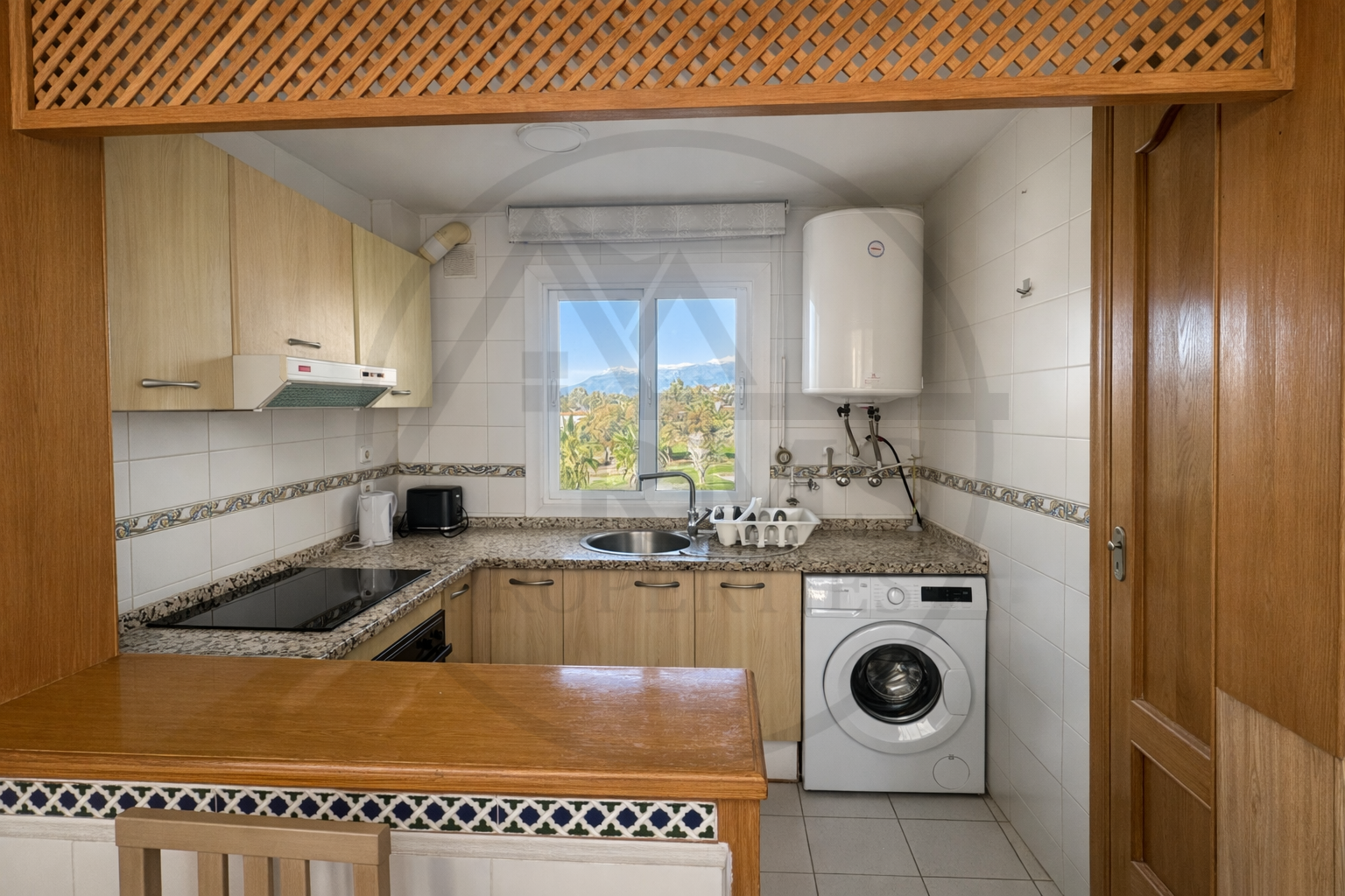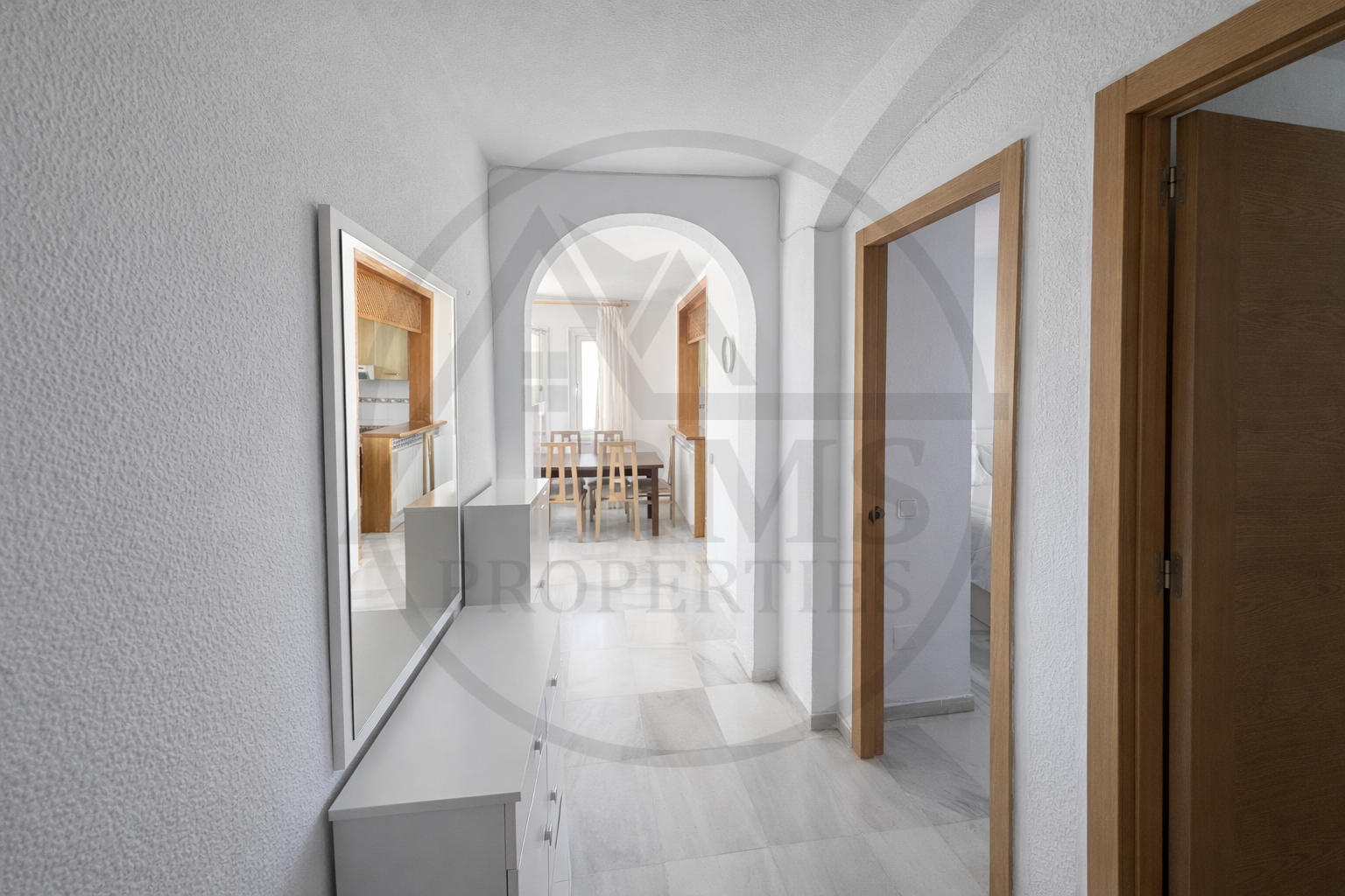 Die Wohnung verfügt über ein Schlafzimmer und ein geräumiges Wohnzimmer mit einer voll integrierten amerikanischen Küche, wodurch ein komfortabler, funktionaler und heller Raum entsteht. Dank ihrer Südausrichtung genießt die Wohnung den ganzen Tag über viel Tageslicht, was dem Zuhause Wärme und Wohlbefinden verleiht.